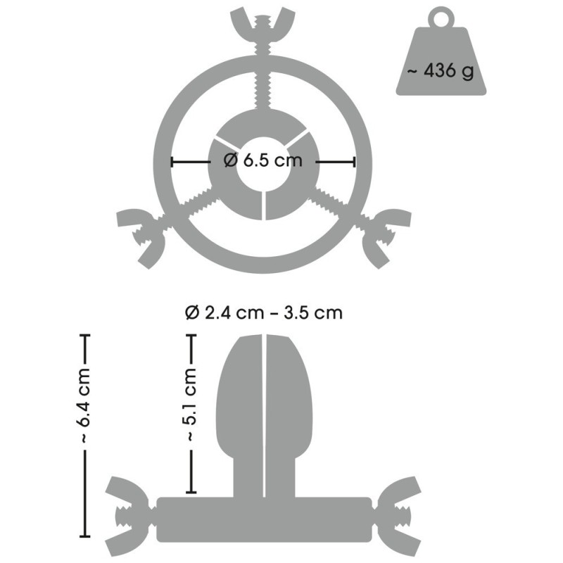 Il divaricatore anale della collezione fetish non solo offre un'ottima stimolazione e allungamento anale, ma anche un'eccitante visione e approfondimento del passaggio posteriore. Con le sue 3 viti di regolazione, il plug funge da speculum anale e da estensore e può essere regolato più volte nel diametro. L'ampio anello alla base garantisce la giusta visuale e un utilizzo sicuro senza scivolare. L'apertura rotonda offre inoltre numerose possibilità di gioco anale con giocattoli e clisteri.