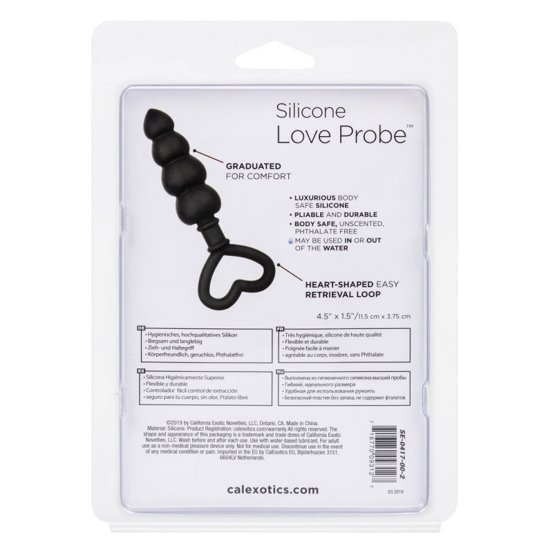 Scegli la Sonda d'amore in silicone, un plug graduato e flessibile con un anello per dita a forma di cuore, realizzato con amore per un'intensa stimolazione della porta posteriore. La sonda anale in silicone offre un eccitante piacere anale dalla parte superiore affusolata lungo l'asta flessibile e a più livelli. Utilizzate l'anello di recupero a forma di cuore per un controllo totale della stimolazione. Perfetto sia per i principianti che per gli esperti di erotismo, il fusto affusolato aumenta la circonferenza per intensificare il piacere. Le sonde flessibili sono realizzate in silicone liscio e senza cuciture. Questo materiale sicuro per il corpo non è profumato e non contiene ftalati, per rendere felici e sani i vostri punti più sensibili.