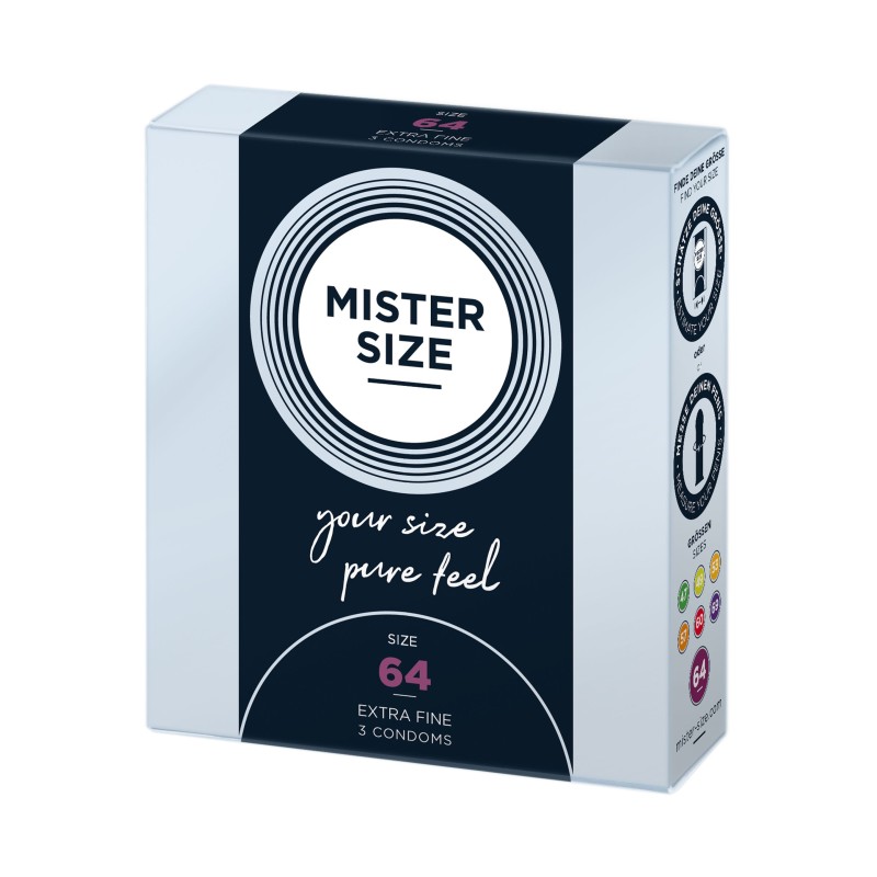 MISTER SIZE - 64 mm (3 pezzi), il preservativo per un pene forte e sodo. Ultra sottile (0,06 mm) - per pura intensità.