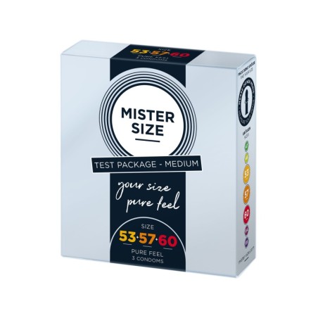 MISTER SIZE - 53 mm, 57 mm, 60 mm (confezione di prova 3x3), per i curiosi che vogliono provare nuove misure di preservativo. Ultra sottile (0,05 mm) - per pura intensità.