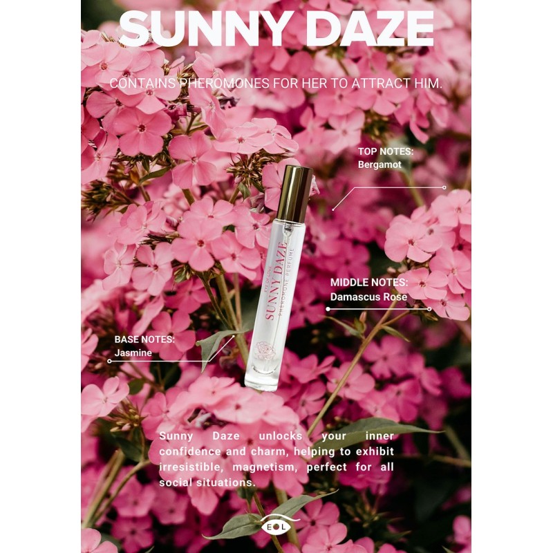 La collezione di profumi ai feromoni “Bloom” di Eye of Love è pensata per incantarlo e conquistarlo. Con due irresistibili fragranze: Sunny Daze per il giorno e Lilac Dream per la notte. Ogni fragranza combina feromoni di alta qualità e di origine naturale. Sunny Daze, ispirato alle varietà sativa, irradia sicurezza e fascino, perfetto per qualsiasi contesto sociale o professionale. Lilac Dream, ispirata all'energia calmante delle varietà indica, offre un'allure romantica e incantevole, ideale per i momenti serali. Se state cercando di aumentare il vostro magnetismo diurno o di infondere nelle vostre notti un'attrazione profonda e irresistibile, questa collezione vi aiuterà a rendere ogni momento indimenticabile.
