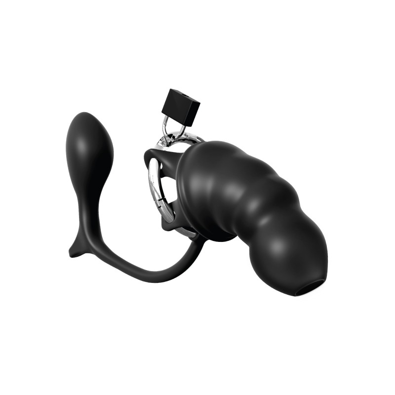 gabbia di castita' in silicone lucchetto e plug pipedream