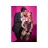 Viene fornito con polsini in pelliccia e metallo, maschera in raso e flagellatore di 45 cm.