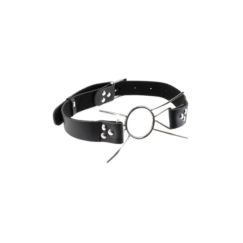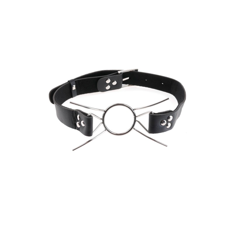 Morso the spider gag ball bondage fetish fantasy . Quando non riuscite a spalancare la bocca a sufficienza questo morso in metallo vi sarà alleato. Ci penserà questo morso gag estremo a spalancarla ancora di più! Un anello e quattro braccetti in acciaio curvo , impediranno alla bocca di chiudersi, lasciandola sempre bene aperta. L'anello ha un diametro di 3,8 cm e viene fissato sul volto del vostro partner attraverso delle stringhe in pelle nera che potrete regolare a piacere .