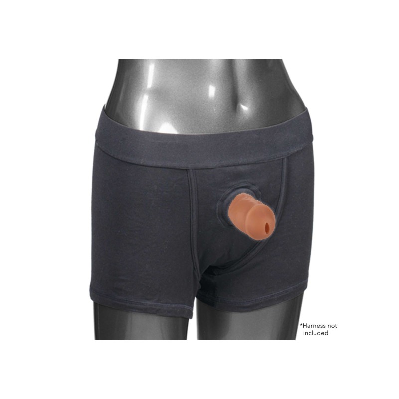 Packer Gear ™ da 5 pollici Ultra-Soft ™ in silicone STP è un packer unico progettato con un albero cavo e un'ampia apertura per la funzionalità FTM Stand-to-pee. Progettato pensando alla funzionalità e al comfort, il packer scolpito si adatta facilmente alla tua imbracatura preferita e il silicone Ultra-Soft ™ premium si flette con il corpo. Il silicone morbido e flessibile, la sensazione realistica e il tono della pelle nera la rendono la sonda perfetta per l'uso e l'uso tutto il giorno.Il silicone ipoallergenico di alta qualità è sicuro per il corpo, inodore e privo di ftalati per mantenere i punti più sensibili, felici e sani. Prima e dopo l'uso, lavare con acqua calda e sapone e poi spruzzare con un Universal Toy Cleaner.