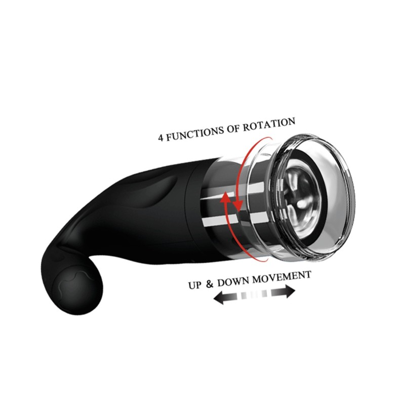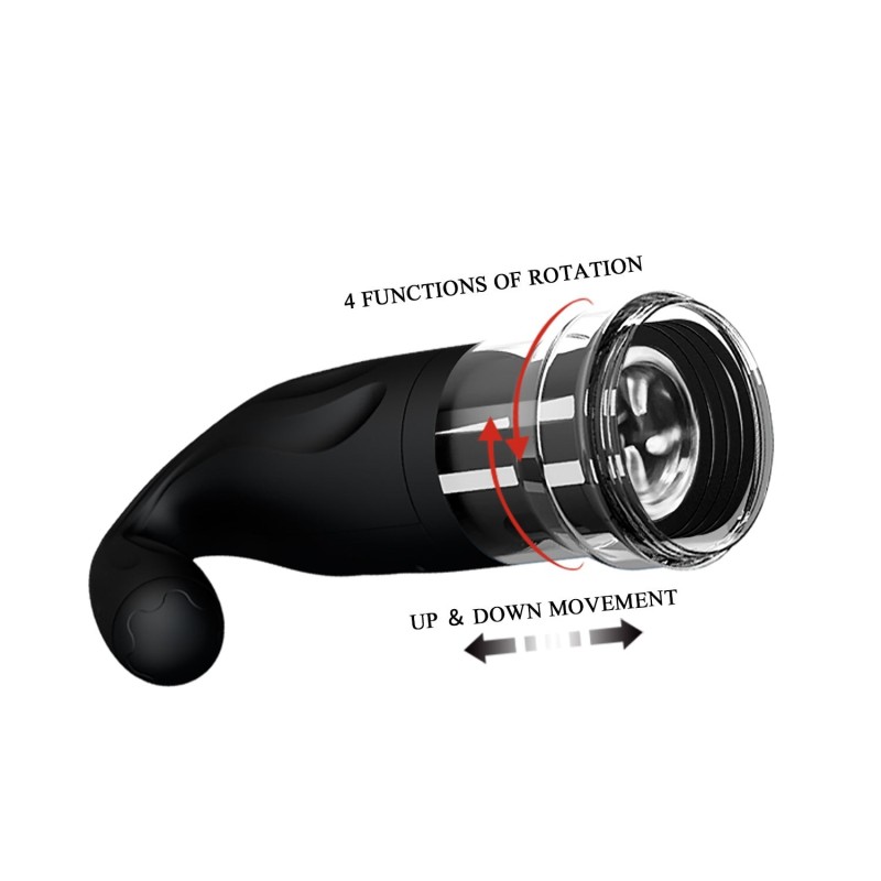 Masturbatore Automatico Breton ricaricabile con sleeve interno testurizzato rimovibile. Dotato di 4 modalità di movimento combinato up & down e rotazione reversibile per una stimolazione realistica e avvolgente. Struttura ergonomica con impugnatura curva e comandi integrati. Dimensioni: lunghezza 273 mm, diametro 92 mm. Alimentazione via USB.