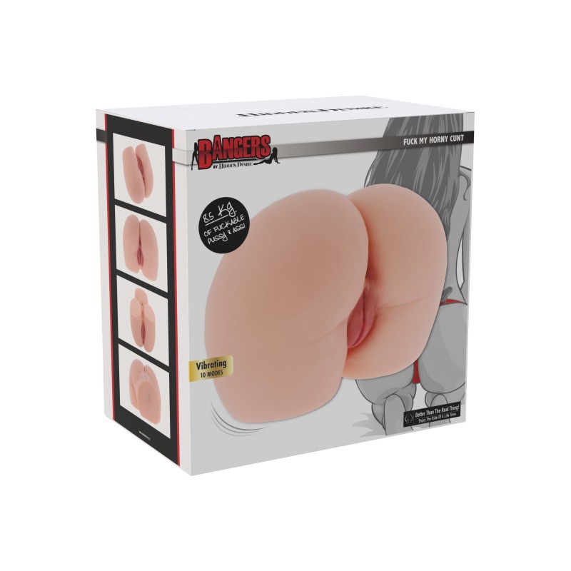 BANGERS di HIDDEN DESIRE offre una collezione unica di masturbatori realistici, appositamente realizzati per coloro che osano spingersi oltre i confini del piacere. Fuck My Horny Cunt è un masturbatore superbo e realistico. Questa vagina e ano vibranti sono progettati per il massimo piacere sessuale. Sa esattamente come soddisfare il tuo pene. La sua potente capacità di vibrazione ti lascerà senza fiato e pienamente soddisfatto. Basta metterla nell'umore giusto premendo i pulsanti giusti, selezionare la tua modalità di vibrazione preferita e infilare il tuo pene nella sua vagina o nel ano. Non importa quanto tu voglia cavalcare questa donna sexy, lei sarà insaziabile finché non avrai finito. Questo masturbatore sexy è realizzato in morbida Realistic Love Skin e presenta una vagina e un ano realistici con canali dalla texture piacevole. Con un design estremamente sexy, è perfetto per un divertimento intimo hardcore. Fuck My Horny Cunt è una vera e propria attrazione. Scatena le tue fantasie più sfrenate con BANGERS MASTURBATORS.