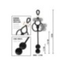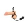 Lunghezza totale 26 cm, palline con filo lunghe 13,7 cm, palline Ø 2,9 cm ciascuna. Anello per testicoli 2,6 x 4,2 cm ciascuno, leggermente estensibile. Anello del pene Ø regolabile (max. 6 cm). Peso 75 g. Silicone, PU, ABS.
