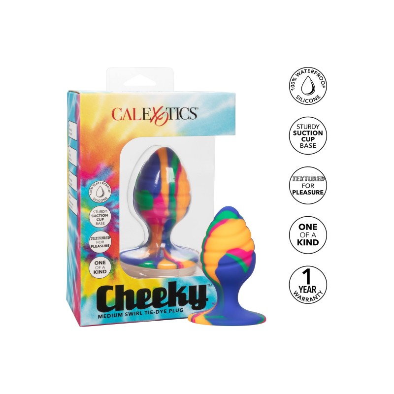 Liberate il vostro lato selvaggio e abbandonatevi a un piacere estremo con il trippy Cheeky Swirl Medium Tie Dye Plug. Questo audace anal plus è fatto per divertirsi, grazie al brillante design tie-dye, alla sonda affusolata e arrotondata e alla versatile base a ventosa per un gioco ancora più divertente. La sonda in silicone aumenta gradualmente e delicatamente la sua circonferenza, per permettervi di godere di un gioco appagante.