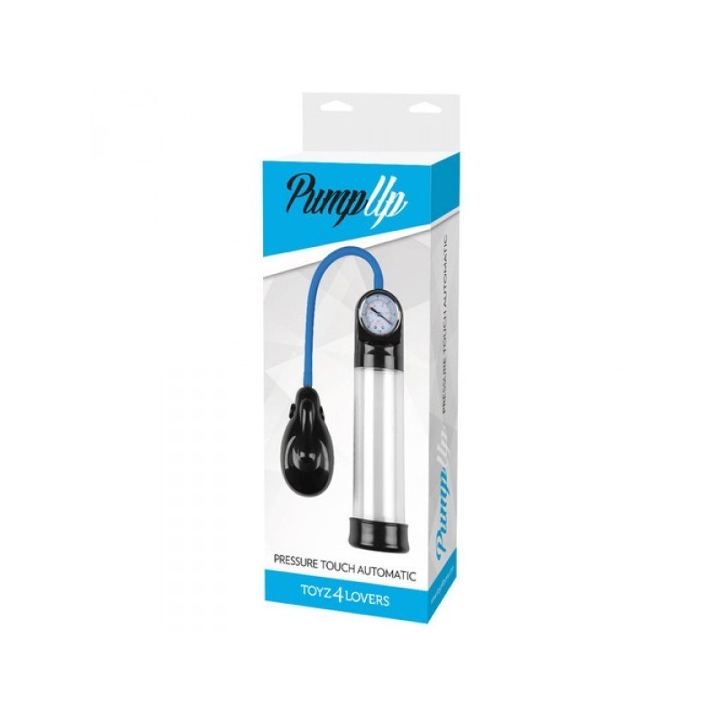 Pompa sviluppatore per pene automatica con barometro pressione pump up pressure touch automatic è uno sviluppatore a pompa automatico. Con Pump UP Pressure Touch l?erezione sara' sempre piu' forte! Osserva la crescita del pene attraverso il cilindro trasparente in ABS con una guaina per l?inserimento in morbido Tpr per una tenuta ermetica, un manometro efficace, funzionale ed elegante e una semplice scala numerica per monitorare i progressi. L'azione della Pump UP Pressure Touch è facile, veloce e sicura grazie alla semplice pressione del pulsante per azionarla e ad un pulsante della valvola di rilascio rapido che consente di avere una pressione personalizzabile. La pompa accresce il flusso di sangue al pene per l'erezione, aumentandone la dimensione e la soddisfazione sessuale. Priva di ftalati. LUNGHEZZA TUBO FLESSIBILE: 25,91 CM;
