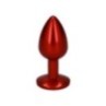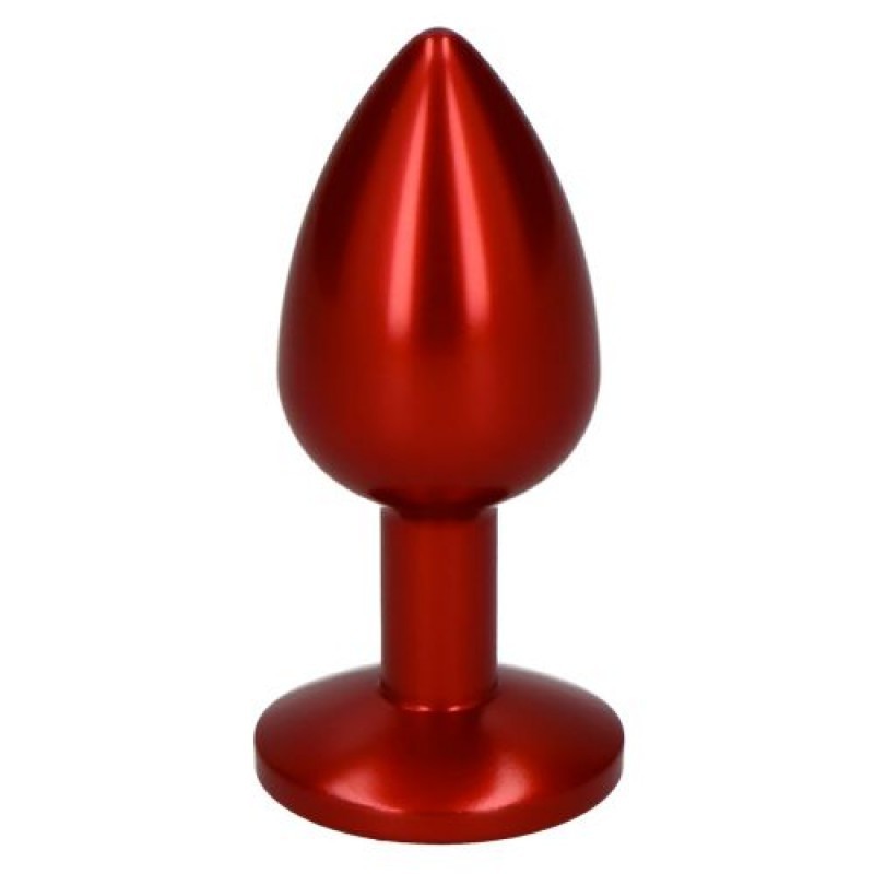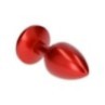 Plug anale in alluminio laccato rosso intenso con un gioiello incastonato alla base. Punta arrotondata per un graduale inserimento, facile presa e maneggevolezza. Totalmente liscio e con classica forma a goccia.