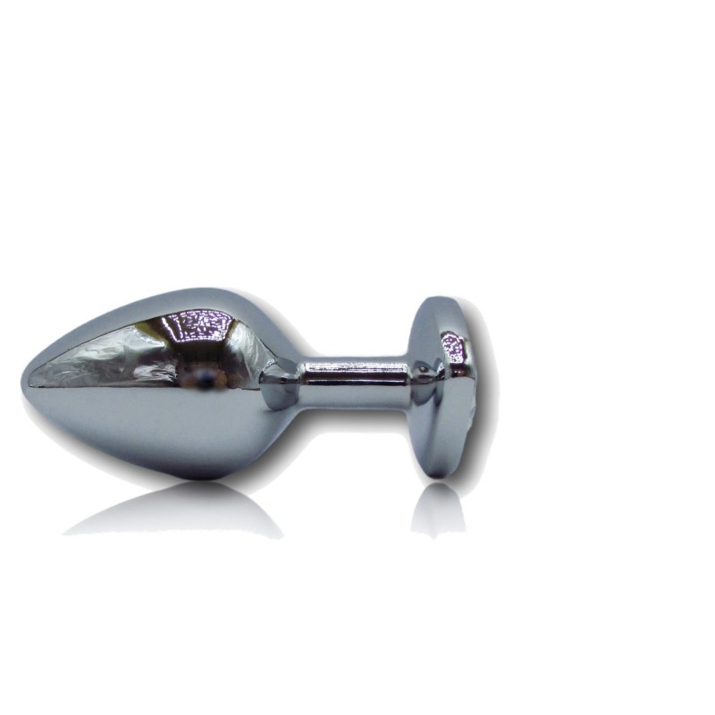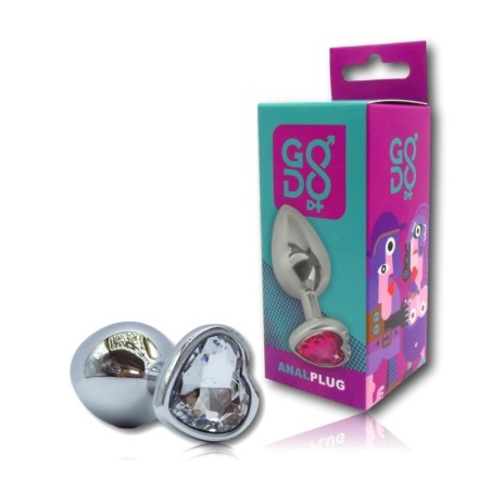 Questo plug medio in alluminio del marchio Godo di + presenta una superficie liscia con un gioiello a forma di cuore trasparente, incastonato alla base. Una volta inserito nell’ano il gioiello rimarrà esterno, vestendo di scintillante eleganza, sensualità e in completa sicurezza, il vostro fondoschiena.