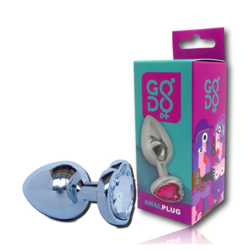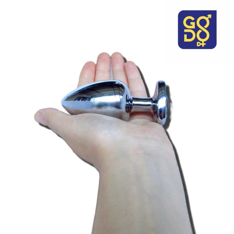 Questo plug grande in alluminio del marchio Godo di + presenta una superficie liscia con un gioiello a forma di cuore trasparente, incastonato alla base. Una volta inserito nell’ano il gioiello rimarrà esterno, vestendo di scintillante eleganza, sensualità e in completa sicurezza, il vostro fondoschiena.