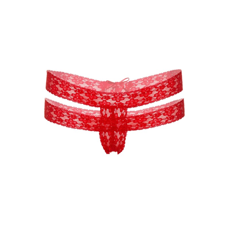 Perizoma in pizzo floreale rosso Lucy crotchless thong panty