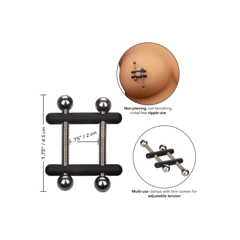 Spingete le sensazioni al livello successivo e godetevi il gioco dei capezzoli con le morse per capezzoli Power Grip Crossbar di Nipple Grips. Esplorate sensazioni elevate con i 2 morsetti multiuso completamente regolabili con un design unico a barra trasversale. Stringete i morsetti birichini sul capezzolo o su qualsiasi parte del corpo e godetevi ogni scarica di dolore e di piacere mentre il morsetto Power Grip tiene stretto il capezzolo. Ogni morsetto è dotato di viti gemelle completamente regolabili per intensificare e stimolare il piacere in qualsiasi punto del corpo. Man mano che si stringe la tensione, il formicolio si intensifica a ogni giro di vite, per il massimo della stimolazione dei capezzoli. Questi stuzzicanti capezzoli, facili da usare, sono ideali per lui, per lei o per loro.