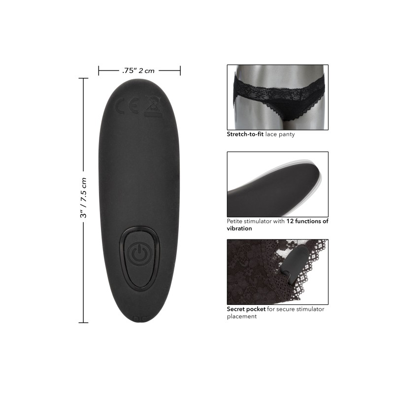 Concediti il tuo nuovissimo piccolo segreto sporco con il set slip con telecomando. Questo set sexy include una mutandina sfacciata elasticizzata, un teaser per mutandine ricurvo e un telecomando discreto con una portata fino a 32 '(10 m). Ogni volta che o dove ti porta la passione, le 12 intense funzioni di vibrazione di questo appassionato mini vibratore sono pronte per il gioco. Le mutandine di pizzo sexy ed elastiche sono dotate di una tasca interna discreta per la tasca perfetta dello stimolatore.