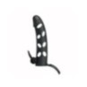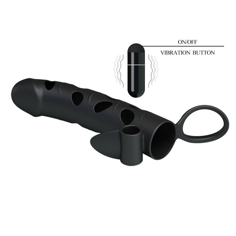La guaina e prolunga pene Vibe Xtender è realizzata in silicone flessibile traforato per offrire comfort e traspirabilità. Dotata di fascetta di ancoraggio e stimolatore clitorideo vibrante, garantisce una stimolazione doppia. Misura interna di 135 mm e diametro interno di 30 mm per una vestibilità stabile. Include un bullet vibrante alimentato da 3 batterie LR41.