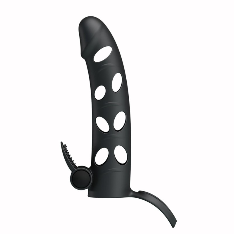 Guaina indossabile per pene con stimolatore clitoride vibrante in silicone pretty love