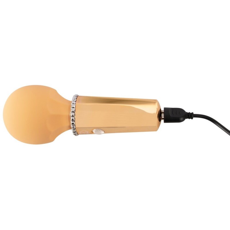 Un design glamour e fresco per sensazioni calde! Piccola e maneggevole bacchetta da massaggio Mini Wand Mango di You2Toys in un fresco e fruttato colore sorbetto e in un elegante look metallico con una scintillante pietra glitterata come pulsante di controllo. Con la sua testa flessibile e morbida come la seta, è adatta a massaggi prolungati e a stimolazioni precise. Un potente motore offre 10 modalità di vibrazione versatili con la semplice pressione di un pulsante. La vibrazione extra potente si sente intensamente nella testa del massaggiatore e non nell'impugnatura. La bacchetta compatta e leggera si adatta perfettamente alla mano ed è facile da guidare. Inoltre, grazie alle sue comode dimensioni, questo potente apparecchio entra discretamente in qualsiasi tasca, perfetto per i viaggi! Ricaricabile - cavo di ricarica USB incluso. Lunghezza totale 12,7 cm, testa massaggiante lunga 5,6 cm, Ø massimo 4,8 cm. Peso 110 g. Silicone, PU, ABS.