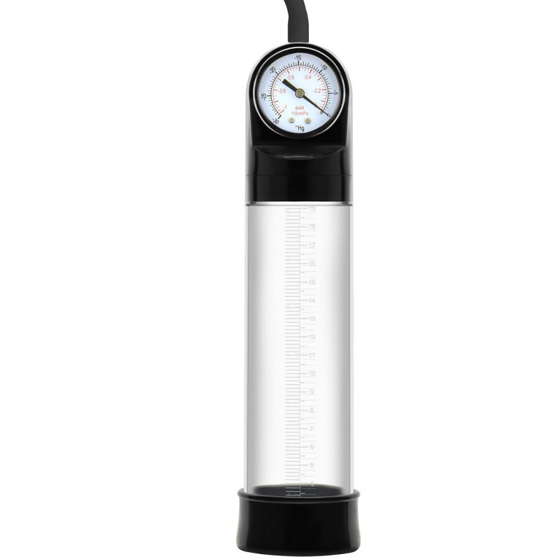 FUSION X di HIDDEN DESIRE è la collezione definitiva di pompe per il pene, realizzata per coloro che osano spingersi oltre i confini del piacere. Le dimensioni contano, e la pompa per pene Pro Pressure è proprio quello che stavate cercando per ottenere quella lunghezza extra. Basta infilare il pene nel tubo, tenerlo stretto contro l'inguine e iniziare a pompare! La pompa manuale con impugnatura a T è progettata ergonomicamente per adattarsi perfettamente alla vostra mano. Guardate il vostro pene diventare più grande e più duro ad ogni pompata. Trovate il vostro livello di pressione ideale utilizzando il barometro e seguite i vostri progressi con le linee di misurazione sul tubo. Preparatevi ad aumentare le vostre dimensioni e la vostra sicurezza con FUSION X PENIS PUMPS!