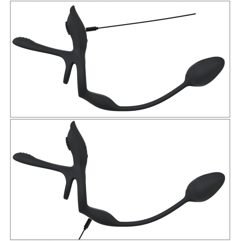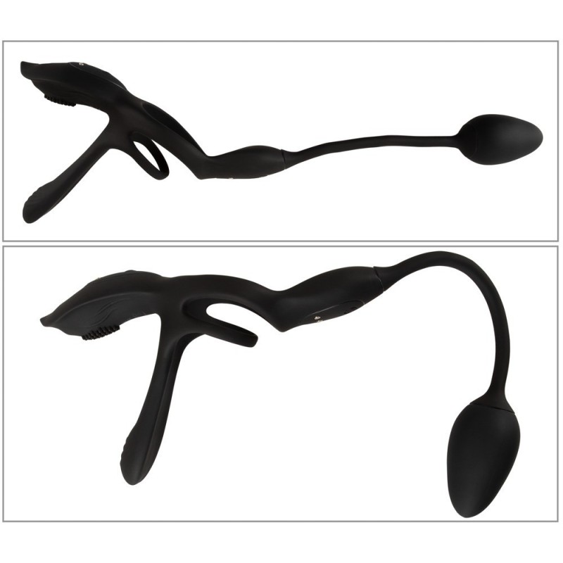 5 giocattoli in uno per un climax condiviso! Il vibratore di coppia multifunzione RC di Coup!es Choice sostiene il pene e coccola le coppie durante il sesso con vibrazioni profonde. Non meno di 5 giocattoli sono combinati in questo multi-talento: Anello per pene e testicoli, vibratore di coppia, vibratore clitorideo e plug anale vibrante. 10 diverse modalità di vibrazione possono essere percepite intensamente da entrambi i partner. Possono essere comodamente controllate con il pratico telecomando. Portata 10 metri. I 3 motori silenziosi possono essere controllati anche separatamente direttamente sul toy. Perfetto anche per il divertimento nella vasca da bagno e nella doccia, perché è impermeabile! È molto facile da usare: l'anello per pene e testicoli si infila in modo che il vibratore di coppia piatto si annidi sopra il pene. Questo permette a lui di godere di un pene più grosso durante il sesso e di sentire lui stesso una meravigliosa tensione. Inoltre, l'anello per il pene sostiene l'erezione a lungo grazie all'effetto di congestione del sangue. L'anello per testicoli assicura una presa sicura e una trazione eccitante. Il vibratore clitorideo, delicatamente stuzzicato, coccola il punto caldo di lei durante il sesso. Il vibroplug viene inserito analmente, sia da chi lo indossa sia per una stimolazione anale supplementare del partner. Realizzati in silicone morbido come la seta, gli anelli elastici sono facili da infilare e il vibratore di coppia e il plug vibro-anale sono facili da inserire. La leggera combinazione vibrante si adatta perfettamente al corpo e segue flessibilmente tutti i movimenti. Ricaricabile - inclusi cavo di ricarica USB e batteria (CR2032) per il telecomando. Lunghezza totale 34,8 cm. Anello per il pene Ø 3,5 cm, anello per i testicoli Ø 5 cm, entrambi estensibili. Vibratore di coppia lunghezza di inserimento 8,5 cm, larghezza 2,3 cm. Vibratore clitorideo lungo 6 cm. Plug vibro-anale lungo 5,5 cm, Ø massimo 3,3 cm, barra di collegamento lunga 17 cm. Peso 129 g. Silicone, PU.