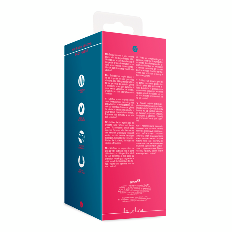 Soddisfa i tuoi desideri o quelli del tuo partner con questo grande dildo vibrante, questo dildo può essere utilizzato da individui di qualsiasi genere o orientamento sessuale per aumentare il piacere sessuale. Compatibile con imbracatura. Preparati a ravvivare la tua vita con Loveline!