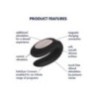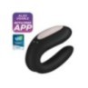Vibratore per coppie della linea Satisfyer, questo innovativo massaggiatore offre la nuova app Satisfyer Connect compatibile con qualsiasi smartphone, tablet Android o Apple e Apple Watch. Telecomandato dal telefono con funzioni esclusive come la programmazione tattile, programmi di vibrazione regolabili in modo continuo, rilevamento del movimento o persino l'interazione di vari sex toys collegati. È impermeabile ed è realizzato in silicone medico, liscio come la seta, estremamente facile da far scorrere e assorbe rapidamente il calore corporeo. Doppio motore controllati separatamente, ricaricabile tramite cavo USB incluso.
