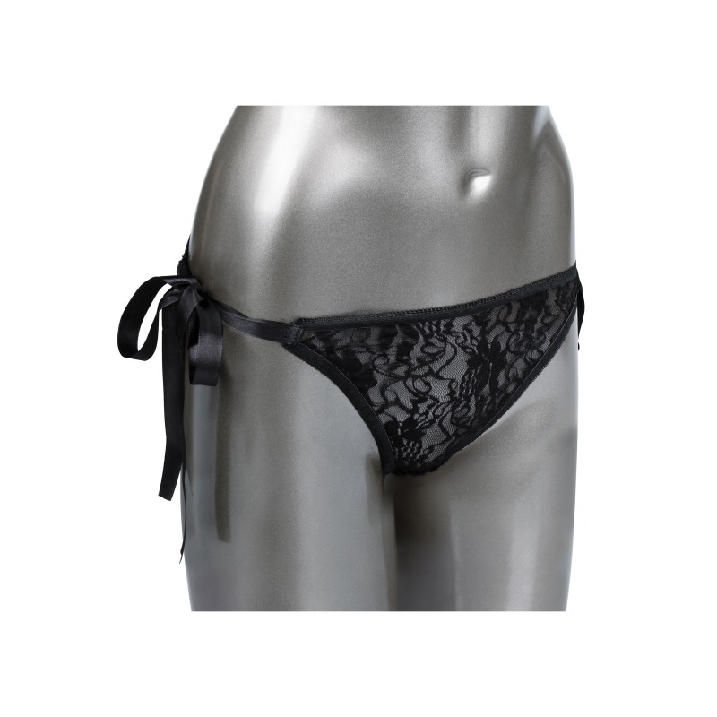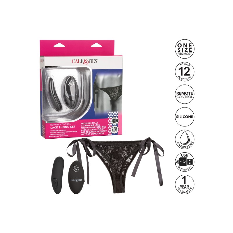 Concediti il tuo nuovo sporco piccolo segreto con il set di lacci del telecomando. Questo set sexy include un perizoma in pizzo elasticizzato da annodare, un collant curvo e un telecomando discreto con una portata fino a 10 m. Ogni volta che o dove ti porta la passione, le 12 intense funzioni di vibrazione di questo appassionato mini vibratore sono pronte per il gioco. Le mutandine in pizzo sexy ed elasticizzate presentano una tasca interna discreta con lacci laterali in raso per la perfetta tasca dello stimolatore.