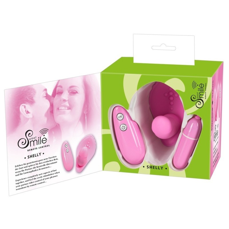 La vibrazione del sussurro in 7 passaggi può essere controllata premendo un pulsante sul pratico radiocomando di piccole dimensioni. Con cinturino appeso. Rosa. Conchiglia di circa 6 x 10 cm. Vibratore lungo 7,5 cm, Ø 3 cm. Materiale: silicone Batterie incluse