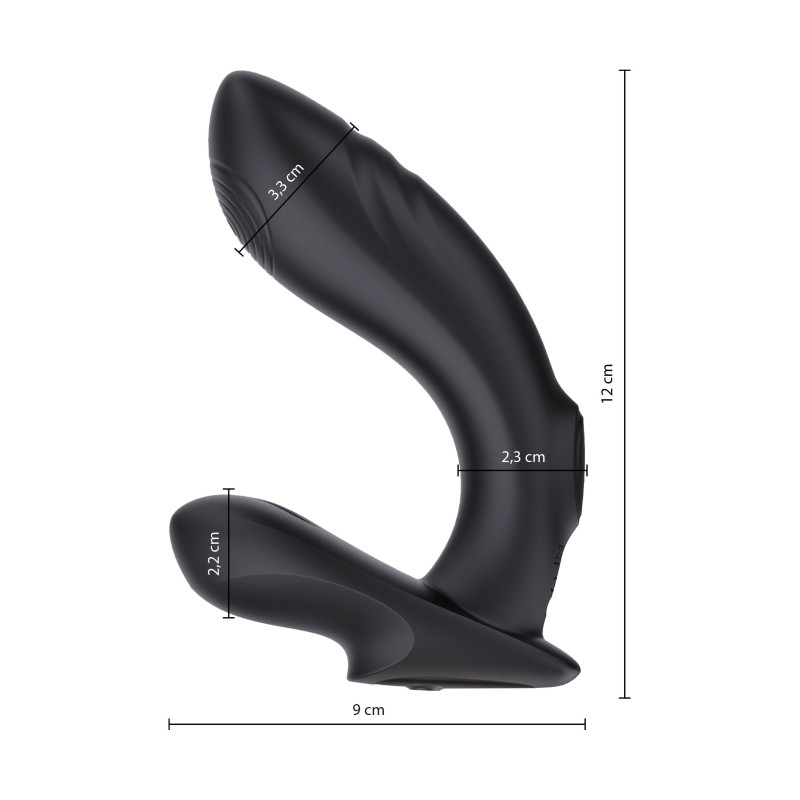 Il massaggiatore prostatico Mustang è dotato di due motori: un motore vibrante e pulsante per la massima stimolazione della prostata e un motore vibrante per stimolare il perineo. La Mustang viene fornita con un telecomando per il divertimento a mani libere o consegna il controllo al tuo partner.