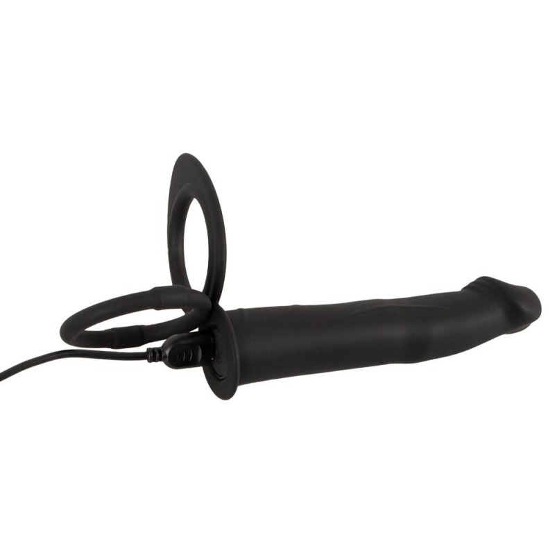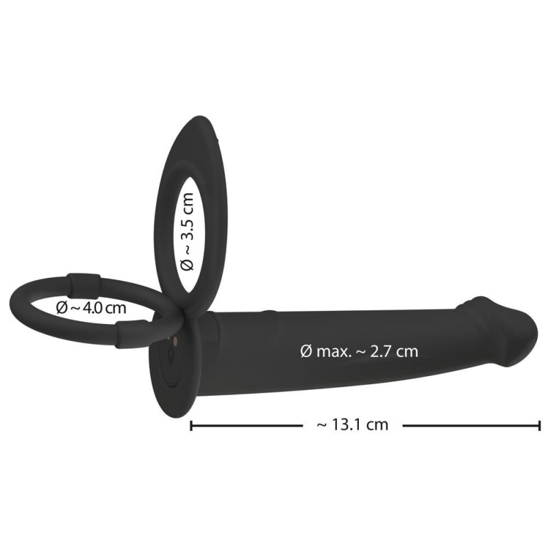 L'RC double fucker di Black Velvets è dotato anche di un (secondo) vibro-pene per una doppia spinta. Il vibratore anale, sottile e leggero, è saldamente collegato all'anello combinato per pene e testicoli. Gli anelli si infilano semplicemente sul pene e sui testicoli e tengono il vibratore saldamente in posizione. Gli anelli supportano anche l'erezione con una vestibilità stretta.