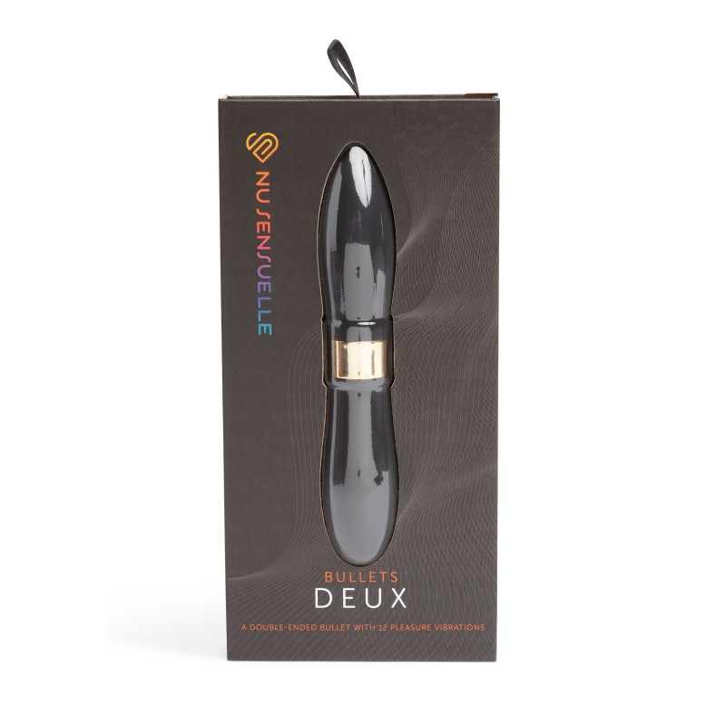 I Deux bulletS sono a doppia estremità, il che li rende multiuso. Ogni estremità del bullet sfoggia una forma distinta e contiene il proprio motore 60SX, che comanda 12 velocità di vibrazione. L'estremità appuntita del bullet è ottimale per la stimolazione puntuale, mentre la sua estremità più arrotondata fornisce una copertura massimizzata. Le possibilità sono infinite!