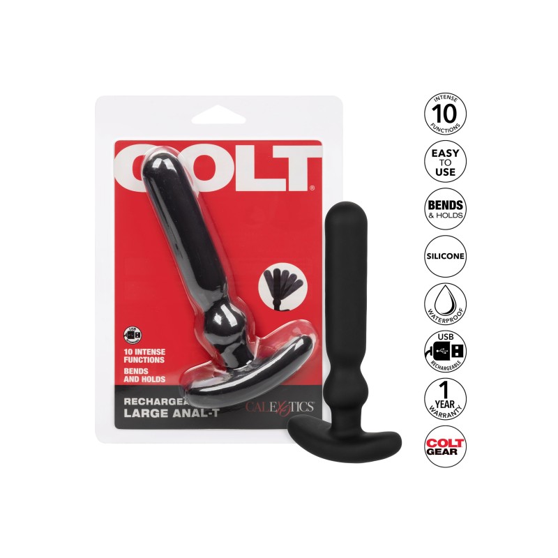 Il Colt Rechargeable Large Anal-T offre un piacere potente a un giocattolo amato dai fan. Il design multidirezionale con 10 funzioni di vibrazione potente consente a questa sonda di flettersi con i vostri movimenti e di offrire una stimolazione intensa. Concedetevi un piacere personalizzato, selezionando ognuna delle 10 potenti funzioni di vibrazione. Lo stimolatore rotante e la base sensualmente ricurva sono sicuri di mandare voi e il vostro amante in estasi. Mentre il potente motore emette ottime vibrazioni, il corpo sottile e flessibile ha un posizionamento multidirezionale per permettervi di esplorare ogni vostro delizioso desiderio. Sia che stiate facendo un tuffo con un amante o che vi stiate concedendo una vaporosa sessione in solitaria, aspettatevi fino a 110 minuti di vibrazioni impermeabili. Ricaricate il piacere e tornate a giocare in solo 1,5 ore con il cavo USB in dotazione. Il chip di memoria ad alta tecnologia permette alla sonda di sapere cosa vi piace, rilevando l'ultima funzione utilizzata.