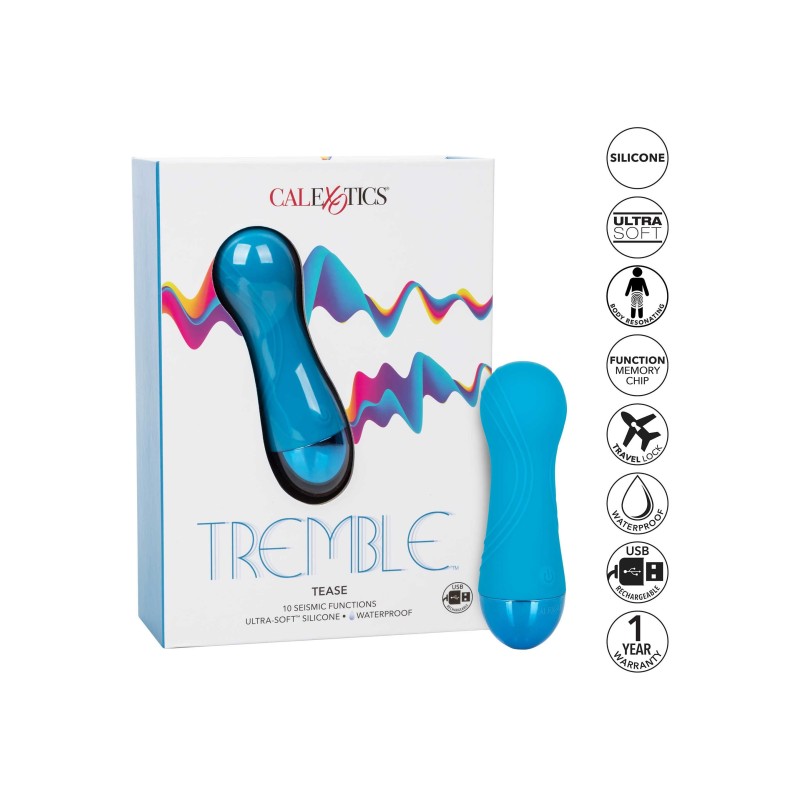 Senti l'energia e metti il piacere sismico nel palmo della tua mano. Con vibrazioni profonde e rumorose e una punta rotonda simile a un bulbo, il Tremble ™ Tease è fatto per individuare il piacere completo. Il motore di risonanza del corpo, il silicone a doppia densità Ultra-Soft ™ e le 10 funzioni di vibrazione sismica forniscono una stimolazione sconvolgente. Diventa giocoso mentre pedali attraverso 10 indulgenti funzioni di vibrazione, pulsazione ed escalation con il pulsante di controllo facile da toccare. Controlla senza sforzo il puro piacere con un pulsante in silicone di facile tocco e tieni premuto per 3 secondi per accendere o spegnere. Il silicone a doppia densità Ultra-Soft ™ e il corpo morbido e flessibile sono ideali per esplorare con facilità i punti dolci sensuali ei punti di piacere intimo. Con una forma liscia e una superficie flessibile, sarai in grado di concederti vibrazioni elettrizzanti da qualsiasi angolazione desideri. Usa il controllo a pulsante singolo per goderti 70 minuti di piacere vibrante a bassa velocità e 30 minuti ad alta velocità. Carica la tua passione in solo un'ora e mezza collegando il cavo USB in dotazione alla porta di ricarica autosigillante sul retro del massaggiatore. Il sottile massaggiatore discreto da 5 pollici lo rende il compagno di viaggio perfetto, permettendoti di abbracciare un piacere irradiante ovunque ti portino le tue fantasie.