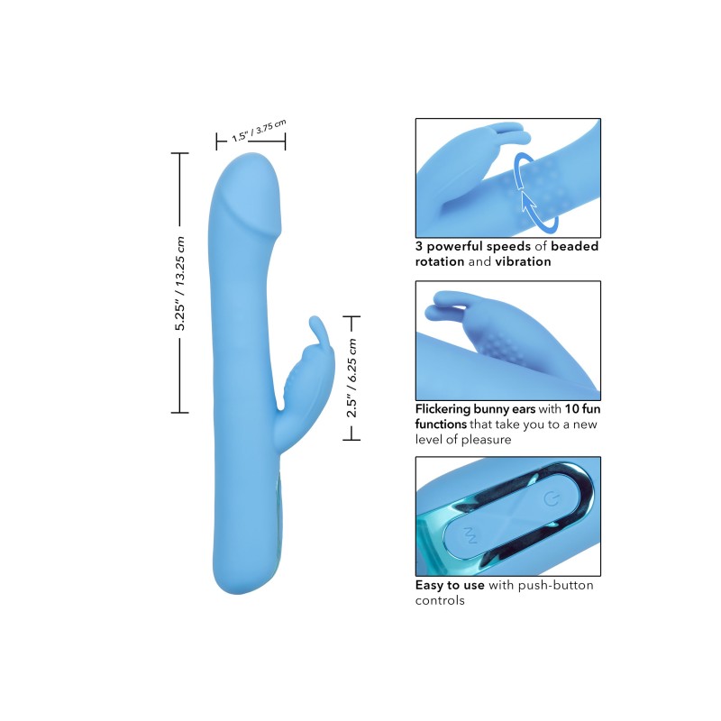La lussuosa Jack Rabbit Collection dà vita a fantasie eccitanti con il sensazionale Elite Rotating Rabbit. Questo massaggiatore dal design accattivante è dotato di 10 funzioni di vibrazione e di 3 incredibili velocità di rotazione e vibrazione dell'asta, per un'esperienza di piacere che durerà tutta la vita. Per massimizzare e personalizzare il vostro piacere, il pad di controllo a 3 pulsanti, facile da toccare, vi permette di gestire in modo indipendente la pletora di vibrazioni e le opzioni di rotazione della punta. Mentre lo stimolatore a coniglietto sfarfalla, la punta ricurva ruota e vibra per un'eccitante stimolazione del punto g. La sensuale punta vibrante ha una potente azione rotante per assicurarvi di colpire sempre il punto giusto. Le orecchie e il naso svolazzanti di questo incantevole coniglietto ospitano un potente motore di vibrazione che offre una stimolazione esterna da urlo. Le vibrazioni morbide e flessibili possono essere utilizzate indipendentemente dalla funzione rotante per un'esperienza di piacere personalizzabile. La porta di ricarica autosigillante consente di ricaricare la passione in 2 ore. Utilizzate l'elegante pad di controllo a 3 pulsanti per selezionare 120 minuti di piacere appassionato.