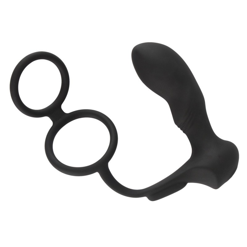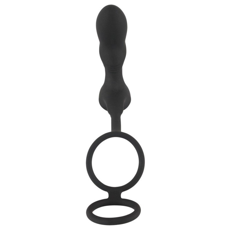 Vibro plug anale lungo 12,5 cm, lunghezza di inserimento 9 cm, Ø da 1,9 cm a 3,5 cm; lunghezza della barra 9,5 cm; anello del pene Ø 3,9 cm, anello del testicolo Ø 4,5 cm, entrambi espandibili. Peso: 118 g. Silicone, PU, ABS.