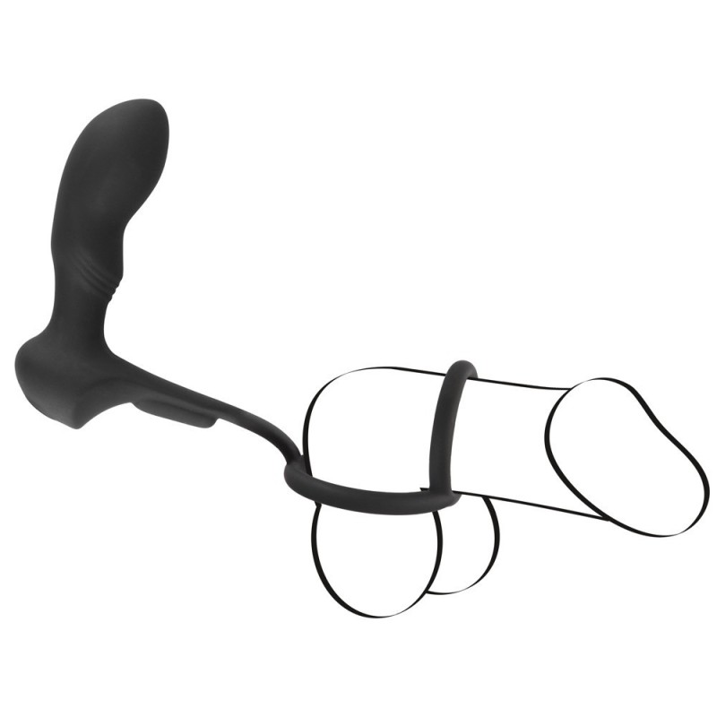 Anello combinato pene/testicoli estensibile con vibro plug anale saldamente bloccato, che può essere comodamente controllato tramite il telecomando senza fili - con una portata di 6 metri anche dal partner. Gli anelli afferrano saldamente il pene e i testicoli e possono sostenere efficacemente la sua erezione grazie all'effetto di stasi del sangue. Allo stesso tempo, il plug vibro-anale inserito con il suo speciale design P-spot e 10 diverse modalità di vibrazione fornisce un'intensa stimolazione nella parte posteriore del pene. La barra di connessione flessibile si annida vicino al perineo e stimola ulteriormente. Può anche essere indossato in modo discreto e permanente sotto i vestiti. Per sensazioni inimitabili - non solo durante il sesso - anche nella vita quotidiana! Con serratura a chiave. Ricaricabile - incl. cavo di ricarica USB e batteria (CR2032) per il telecomando.