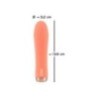 Mini vibratore scanalato pastello da Peachy! in stimolante design a scanalature con testa paffuta - entra in ogni tasca! 10 modalità di vibrazione assicurano un divertimento vario con variazioni di gioco vaginale e anale, così come la stimolazione di punti di piacere esterni e può essere comodamente controllato su e giù con il tocco di un pulsante. Il materiale in silicone di alta qualità con una consistenza morbida al tatto fornisce una sensazione di pelle molto piacevole durante il gioco e le coccole. Ricaricabile - cavo di ricarica USB incluso.