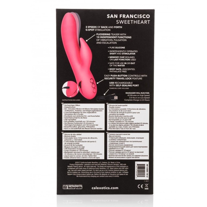 Immergiti nelle pozze di piacere e nelle fantasie baciate dal sole con il giocoso California Dreaming ™ San Francisco Sweetheart. Il lussuoso massaggiatore a vibrazione ha 10 intense funzioni di vibrazione e 3 velocità massaggiatore G-spot avanti e indietro per un'esperienza di gioco unica nel suo genere. Il corpo in silicone senza cuciture e lo sfarfallio del teaser emettono una stimolazione al ginocchio dentro e fuori dall'acqua. Se stai cercando di accendere il calore con un amante o semplicemente goderti un po 'di tempo da solista sensuale, questo incantevole coniglio è pronto. Mentre la punta ricurva oscilla avanti e indietro per un potente massaggio del punto g, il morbido vibratore del clitoride sfarfalla offre un piacere esterno piacevole. Controlla e personalizza il tuo piacere di gioco con il massaggiatore a vibrazione controllato indipendentemente e le funzioni di oscillazione. Ricarica il massaggiatore in 2,5 ore con il cavo di ricarica USB in dotazione per goderti 45 minuti di stimolazione ad alta velocità o 2,5 ore di vibrazioni a bassa velocità. Goditi il controllo senza frustrazione con il pad di controllo a 3 pulsanti easy-touch e la funzione di blocco di sicurezza per la presa in giro pronta per il viaggio. Il corpo praticamente senza cuciture e la porta di ricarica autosigillante ti permettono di ottenere questa vibrante atmosfera impermeabile per un tuffo. Il silicone premium ipoallergenico è sicuro per il corpo, inodore e privo di ftalati per mantenere i punti più sensibili, felici e in salute.
