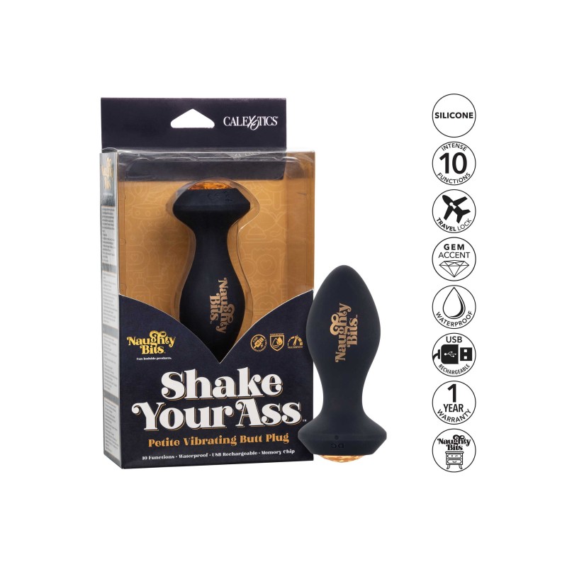 Scuoti e scuoti con le vibrazioni ritmiche del Naughty Bits™ Shake Your Ass™ Petite Vibrating Butt Plug. Questa audace sonda ha un design sagomato e un potente motore vibrante destinato a flettersi con i tuoi movimenti mentre offre una stimolazione che scuote le ginocchia con il tocco del pulsante della pietra preziosa. Concedetevi un piacere personalizzato mentre l'elegante sonda pulsa con 10 vibrazioni vivaci, pulsazioni appassionate ed escalation erotiche. Per garantire tutto ciò che l'esaltante mondo del gioco anale ha da offrire, abbiamo creato una sonda delicatamente affusolata per il massimo del comfort e della stimolazione. La forma flessibile e la base flangiata permettono un facile inserimento e rimozione, mentre l'intenso motore ti fa rabbrividire di piacere. Se stai facendo un tuffo con un amante o indulgendo in una sessione di vapore da solo, guarda avanti fino a 2 ore di vibrazione impermeabile a bassa velocità e 1,5 ore ad alta velocità. Ricarica il piacere e torna a giocare in sole 2 ore con il cavo USB fornito.La collezione Naughty Bits™ è fatta per distinguersi in qualsiasi comodino con design accattivanti e caratteristiche orgasmiche. Il silicone ultra felpato e l'abbagliante pulsante in pietra preziosa di questa splendida sonda anale faranno sorridere anche l'amante più elegante prima e dopo.