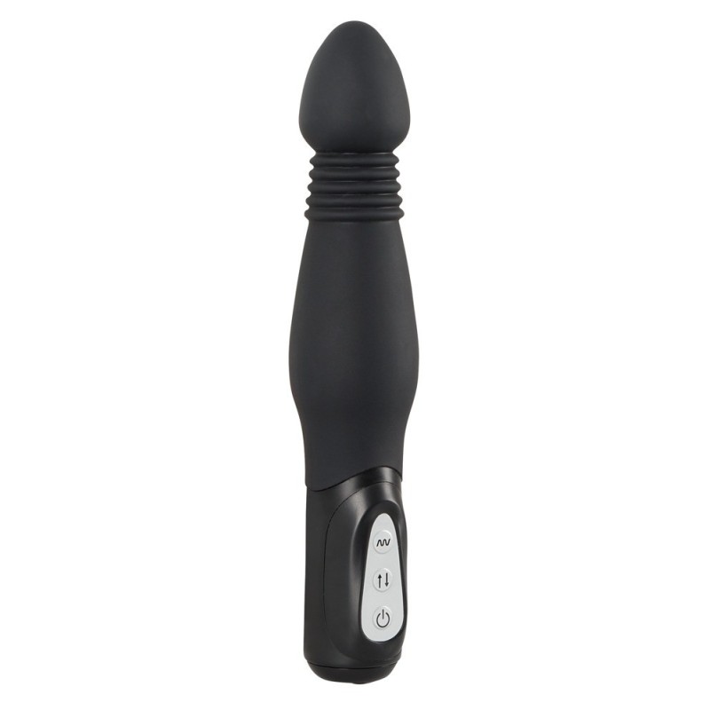 Vibratore anale con funzione shock integrata! Il vibratore anale con punta a cono e albero bulboso ha 7 modalità di vibrazione e 3 velocità di shock che possono essere controllate separatamente. Nero. Lunghezza totale 23,5 cm, profondità d'inserimento 15,5 cm, Ø 2,5-4,4 cm. Materiale: silicone con rivestimento in PU, ABS. Si prega di ordinare le batterie separatamente: 3 x AAA