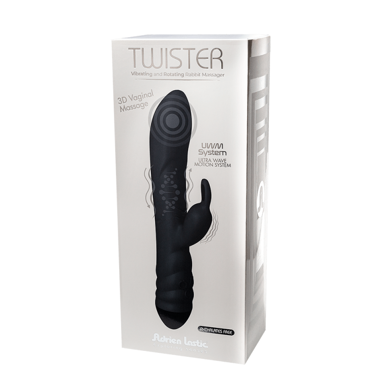 Twister è un massaggiatore per conigli vibrante e rotante con molteplici modalità di vibrazione e una modalità di rotazione tridimensionale indipendente che ti farà girare con piacere.