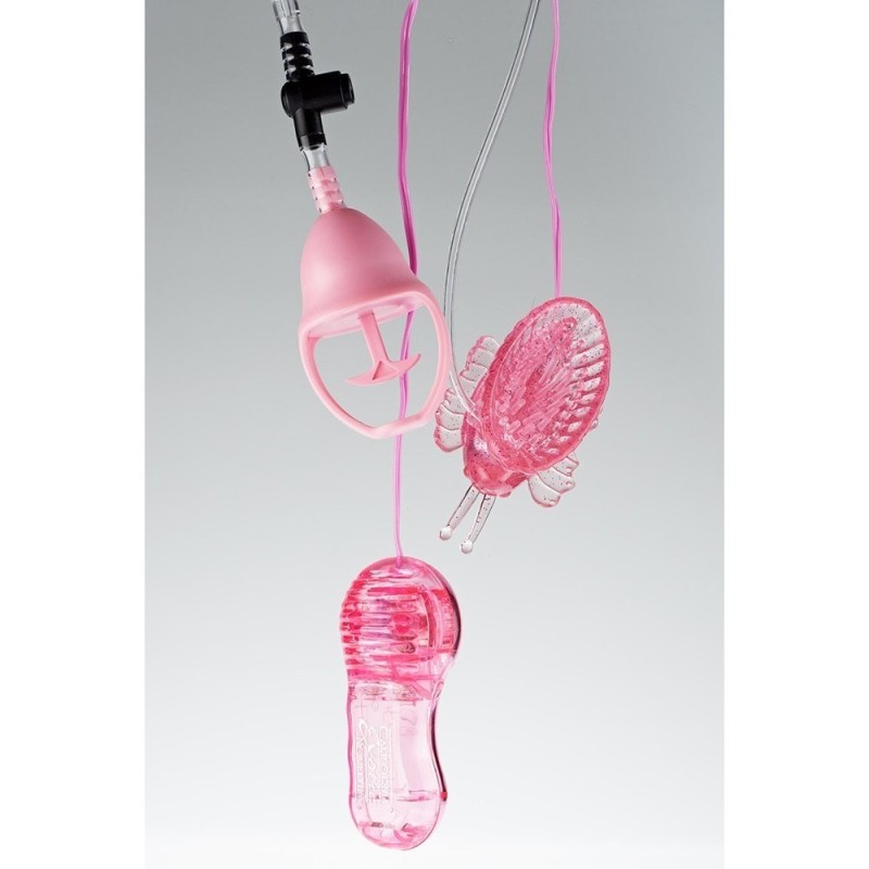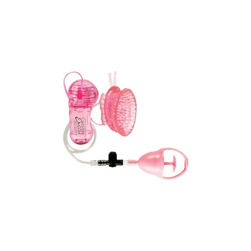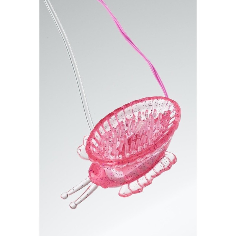 Stimolatore clitorideo a forma di farfalla, delicatamente sagomato e straordinariamente 'piacevole' grazie al soffice jelly. Premendo delicatamente la pompetta si genererà un vuoto intorno alla clitoride e la stimolazione sarà assoluta. Le sensazioni saranno straordinarie grazie alla vasta gamma di velocità e ai delicati rilievi posizionati all'interno della farfalla; le ali e le antenne serviranno per titillare labbra e clitoride. Lunghezza: 7,5 cm Funziona con2 batterie stilo AA non incluse