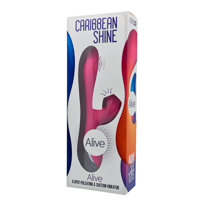 Vibratore con pulsazione del punto G e stimolatore clitorideo integrato. Un nuovo prodotto con tre potenti motori che forniscono effetti di aspirazione, vibrazione e pulsazione disponibili in due colori, turchese e magenta.