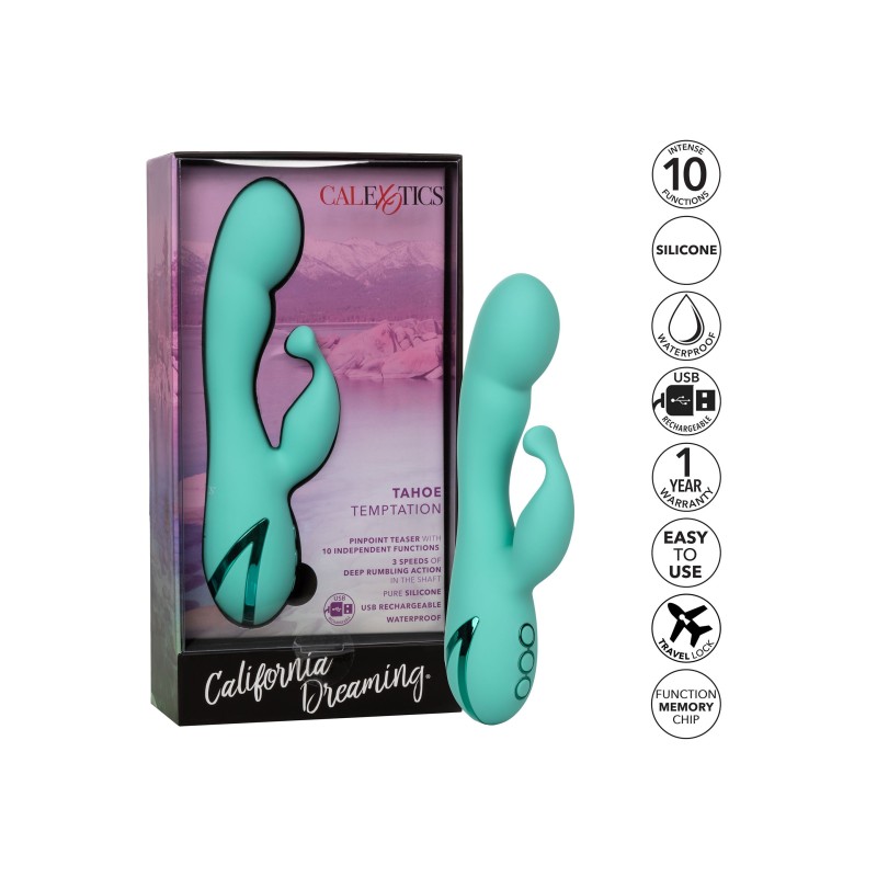 Fai il tuo viaggio a Tahoe dalla camera da letto, con California Dreaming - Tahoe Temptation. Questa macchina a doppia vibrazione ha un rombo profondo nella testa e nell'asta e il teaser esterno allegato ti regalerà sicuramente un puro piacere in montagna.