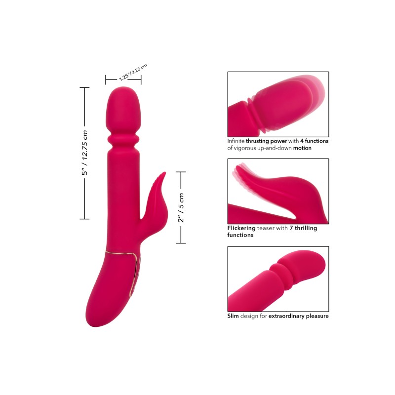 Il potere di una macchina del sesso nel palmo della tua mano - ora questo è Shameless! Questo massaggiatore di lusso è impenitentemente potente con fino a 850 spinte al minuto e un teaser vibrante che ti lascerà a bocca aperta. Con un albero sexy e sottile; questa atmosfera sensazionale ha tutto. Non c'è vergogna in questo gioco! Sperimenta tutto il piacere intenso che desideri con questo incantatore. È dotato di 4 funzioni di vigoroso movimento su e giù ed è realizzato con silicone sicuro per il corpo che è sorprendente sulla pelle. Non solo questo massaggiatore spinge, ma vibra anche con 7 diverse funzioni tra cui scegliere. Il teaser lampeggia per colpire tutti i tuoi punti caldi. Inoltre, il propulsore e il vibratore sono controllati in modo indipendente, quindi puoi personalizzare il divertimento come preferisci.