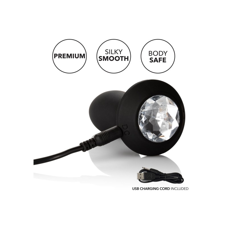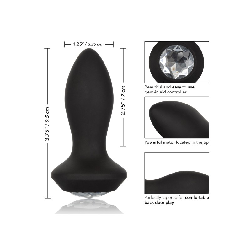 La sonda di cristallo petite vibrante Power Gem® è una sonda in silicone abbagliante e flessibile creata per facilitare il piacere anale emozionante. Il design flessibile ed ergonomico e i potenti motori a vibrazione consentono a questa sonda di flettersi con i movimenti, offrendo al contempo vibrazioni intense. Concediti un piacere personalizzato mentre l'elegante sonda pulsa con 10 vibrazioni vivaci, pulsazioni appassionate ed escalation erotica.