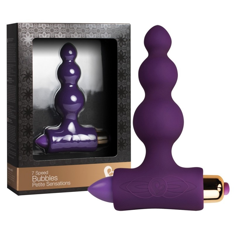 Il Fallo anale Petite Bubbles Plug della famosissima linea Rocks Off vi lascerà sicuramente senza fiato, grazie alla sua vibrazione multivelocità regolasbile . WQuesto penetrante plug donare donare al tuo lato B un comfort unico . Dotato di un potentissimo bullet vibrante interno, estraibile con ben 7 livelli di vibrazioni , regolabili usando un bottone solo, azionabile con una sola mano. La sua forma affusolata, e il soffice silicone, privo di ftalati, che lo contraddistinguono ti permetterà di sollecitare il tuo ano con la massima decisione ed allo stesso tempo con una comodità senza uguali. Dotato di una base rigida per garantire una penetrazione sicura e una manegevolezza garantita. E' dotato di 3 sfere di diametro crescente per una stimolazione graduale e forte .il silicone soffice che lo compone , privo di ftalati, lo contraddingue e lo rende unico . Grazie alla sua forma ti permetterà di sollecitare il tuo ano con la massima decisione ed allo stesso tempo con una delicatezza senza paragoni . Dotato di una rigida base per potervi garantire una sicura penetrazione senza intoppi .