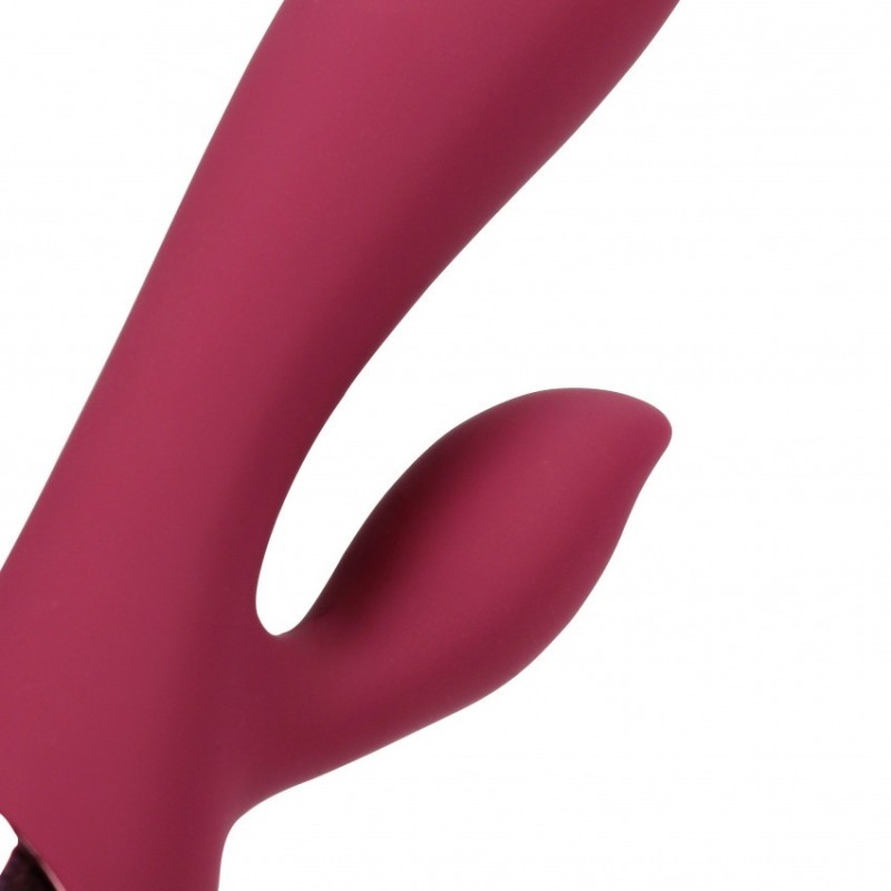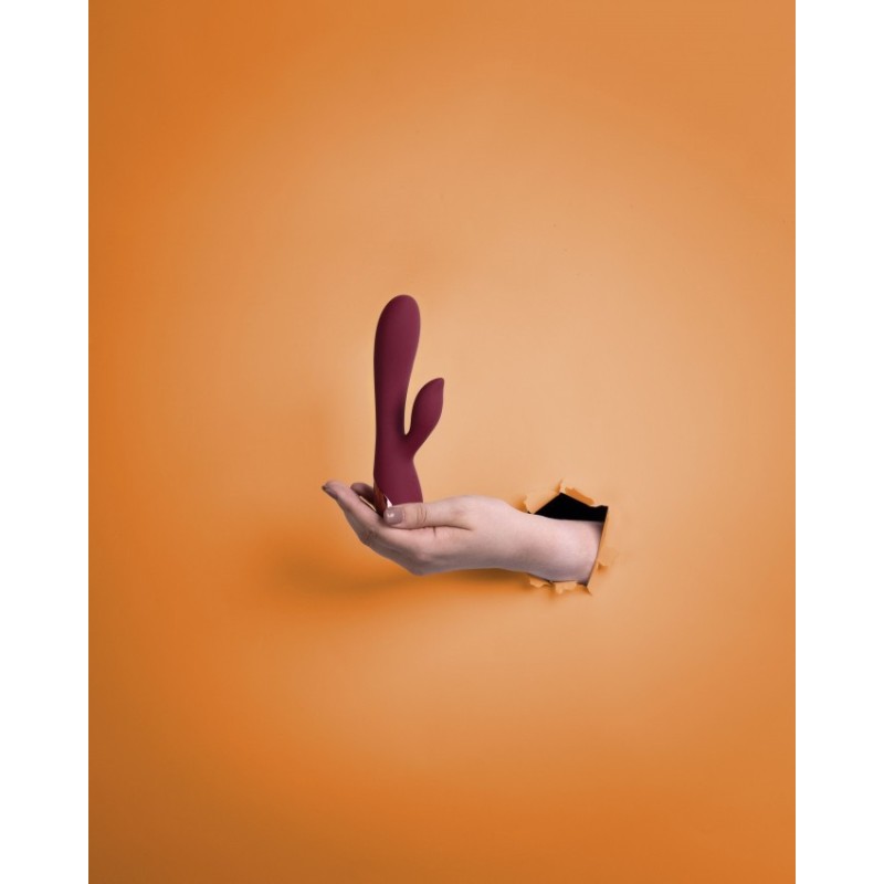 Questo vibratore Rabbit in silicone liscio bordeaux è progettato per la stimolazione simultanea del clitoride e del punto G, creando orgasmi misti. Scoprite infiniti momenti di gioia e sorpresa con questo vibratore della Love Line.