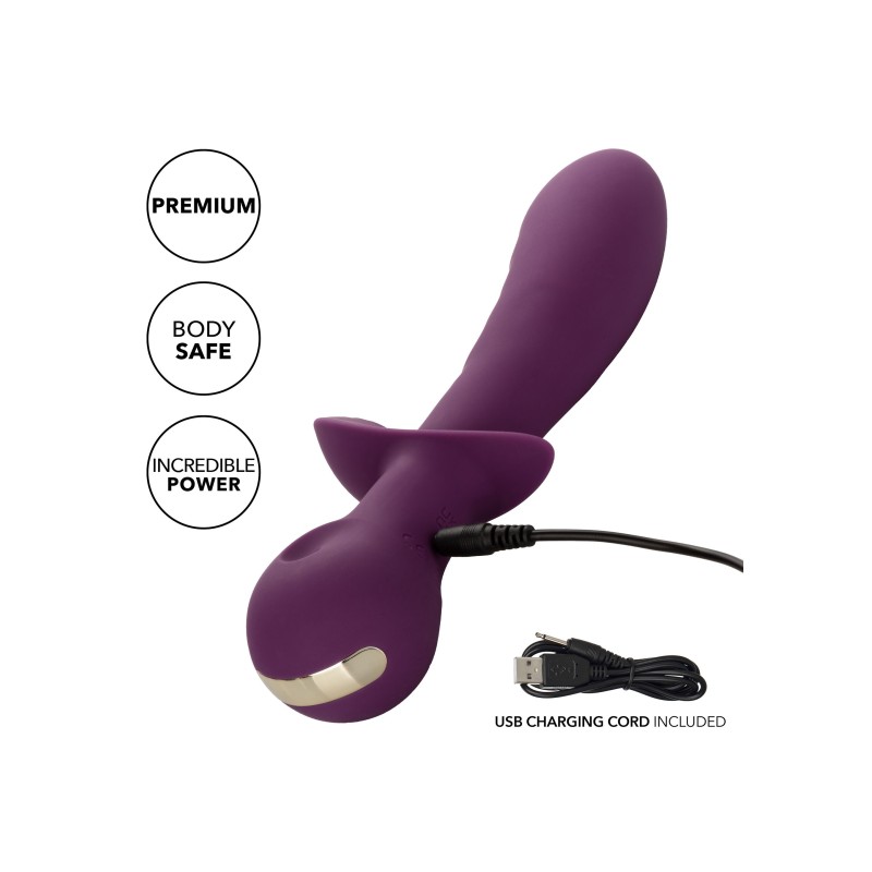 Stimola le ginocchia con i potenti motori doppi. Assecondate il piacere personalizzato, scegliendo tra le 10 potenti funzioni di vibrazione. Due potenti motori, uno nel fusto e l'altro nel teaser, producono vibrazioni rimbombanti da quasi tutte le angolazioni. Scorrete avanti e indietro tra le varie opzioni orgasmiche con i facili comandi a due pulsanti. Il massaggiatore è realizzato in un silicone igienicamente superiore e rifinito con decorazioni di design.